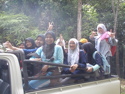 sape kate naik pickup semate?? naik turun bukit merentas utan tuuu.. uih, cam roller coaster okeh! mmg syiokkk. nak2 ujan. pedih muke!!